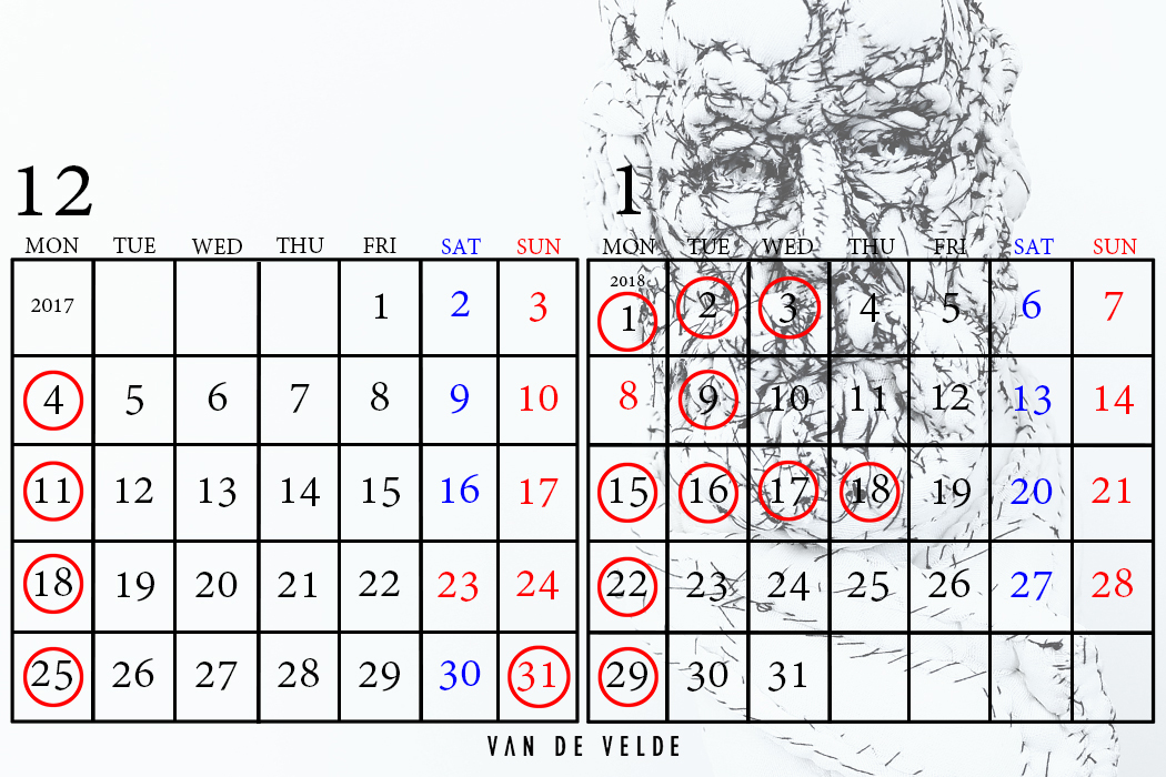 年末年始の営業カレンダーになります。(赤マルがお休み)